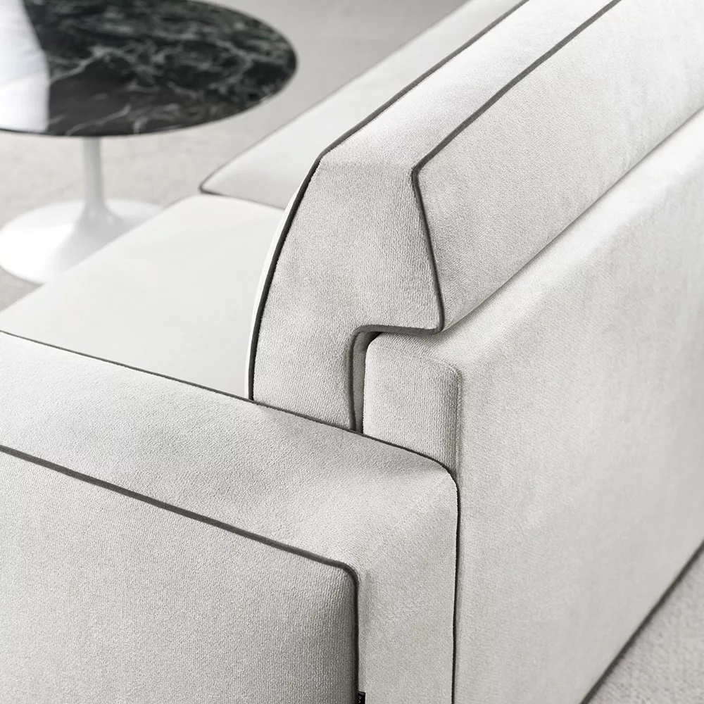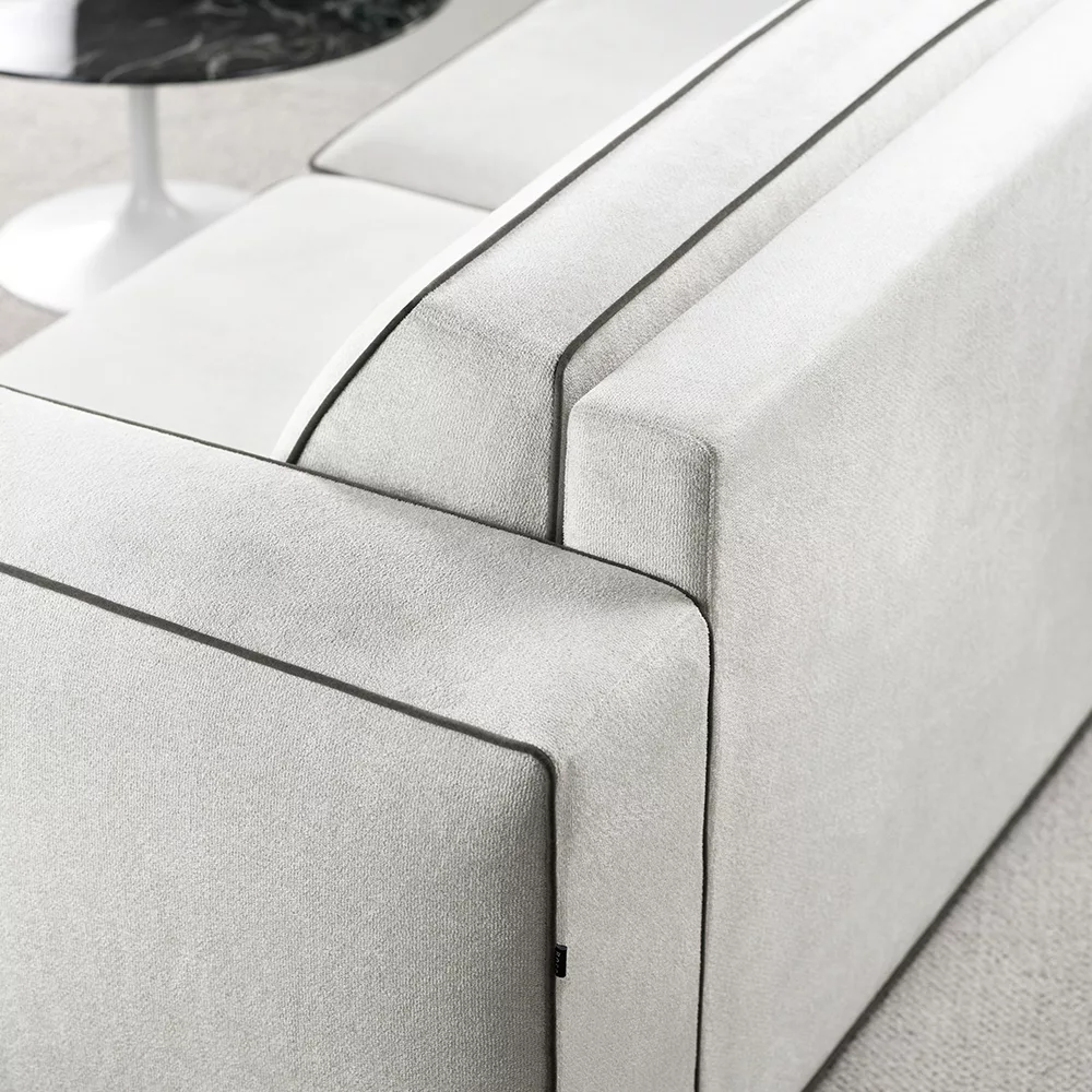 沙發座墊與底座巧妙分層,搭配撞色滾邊,視覺層次更加豐富