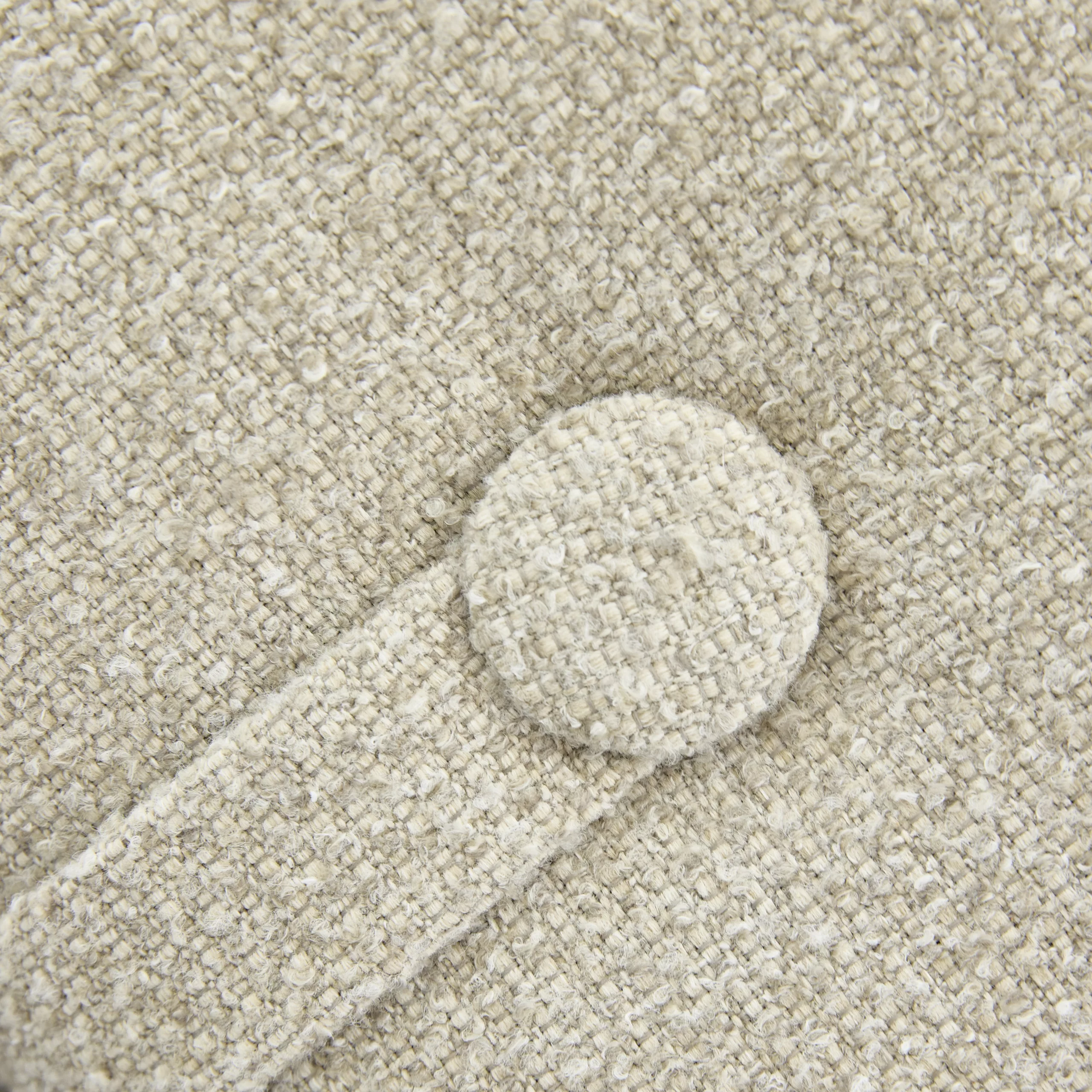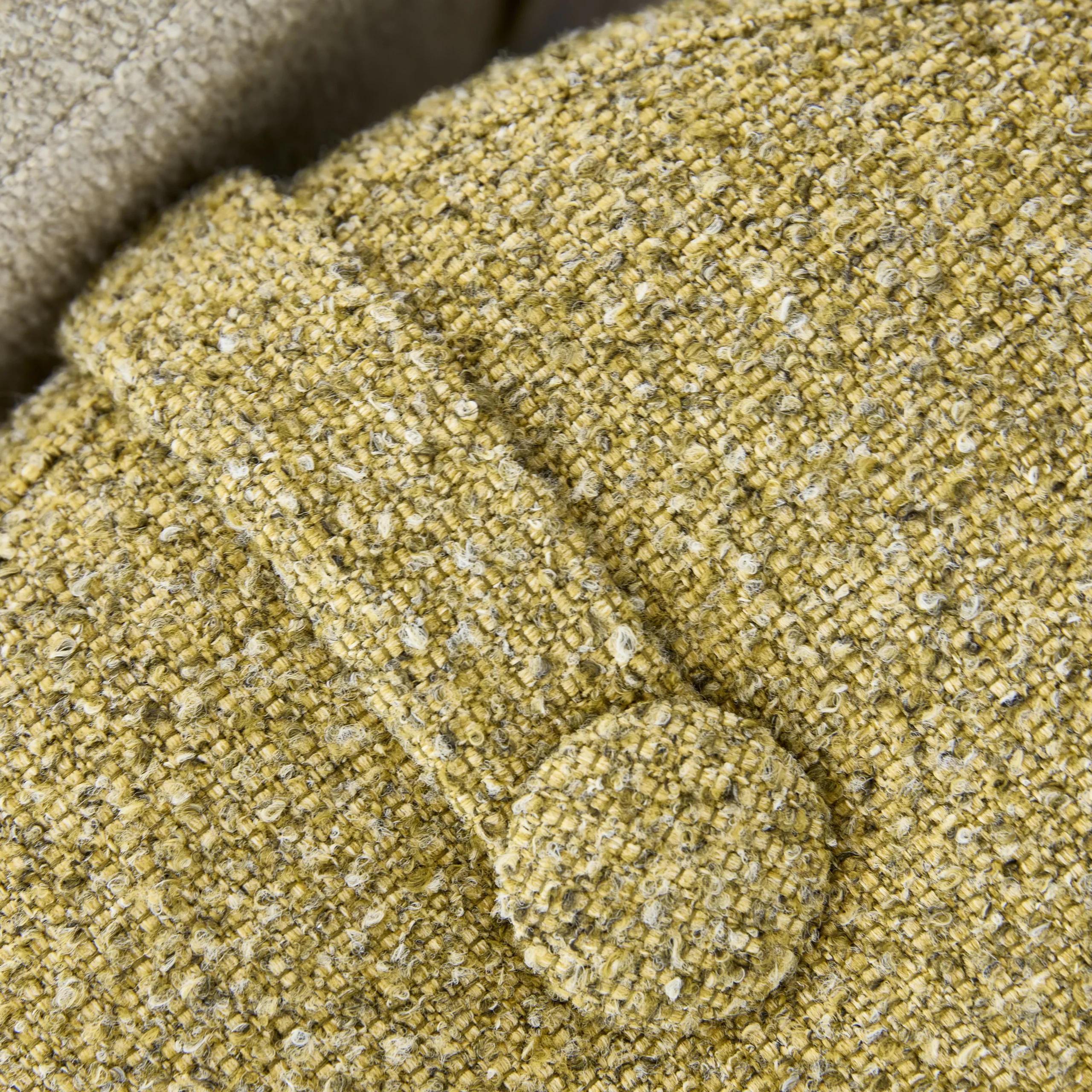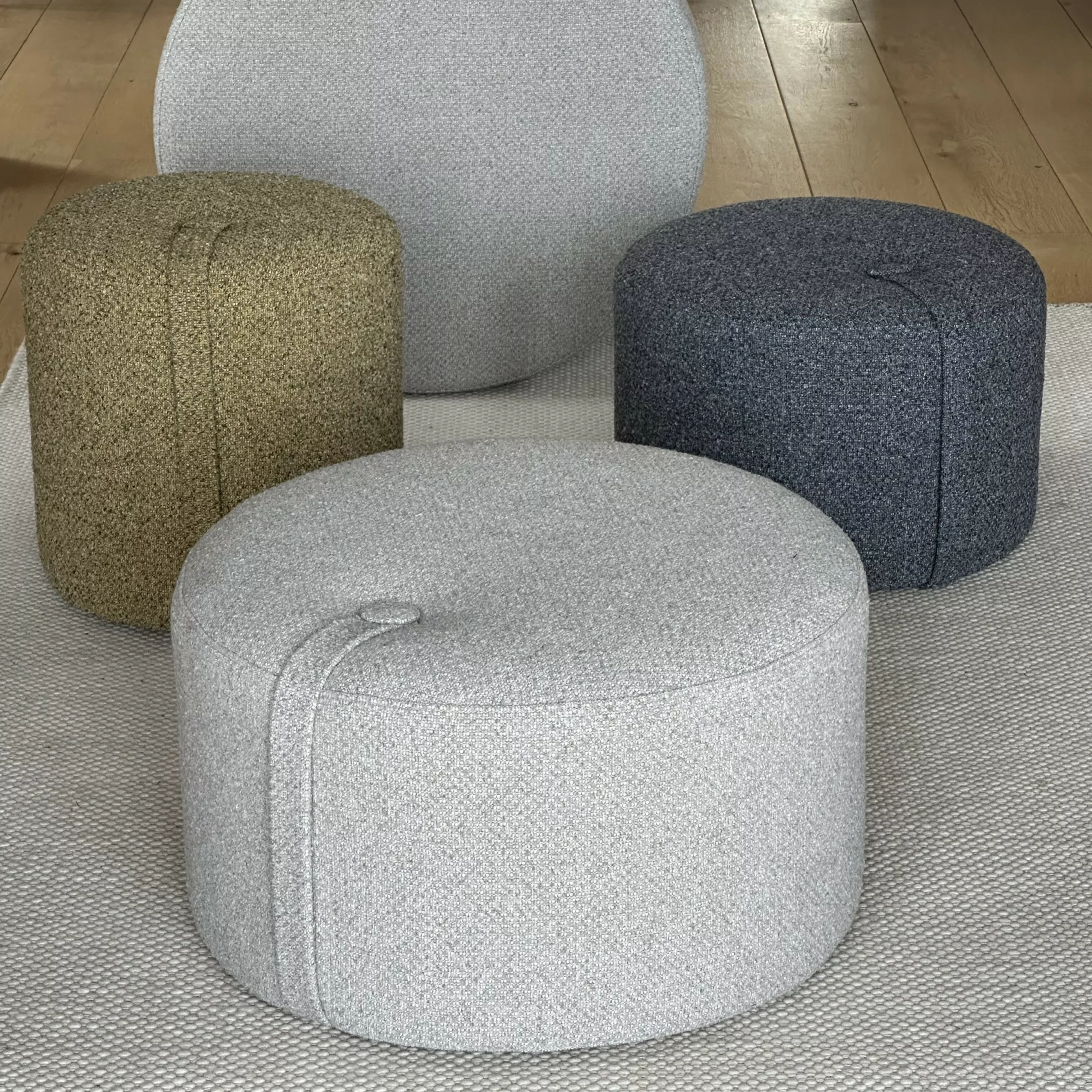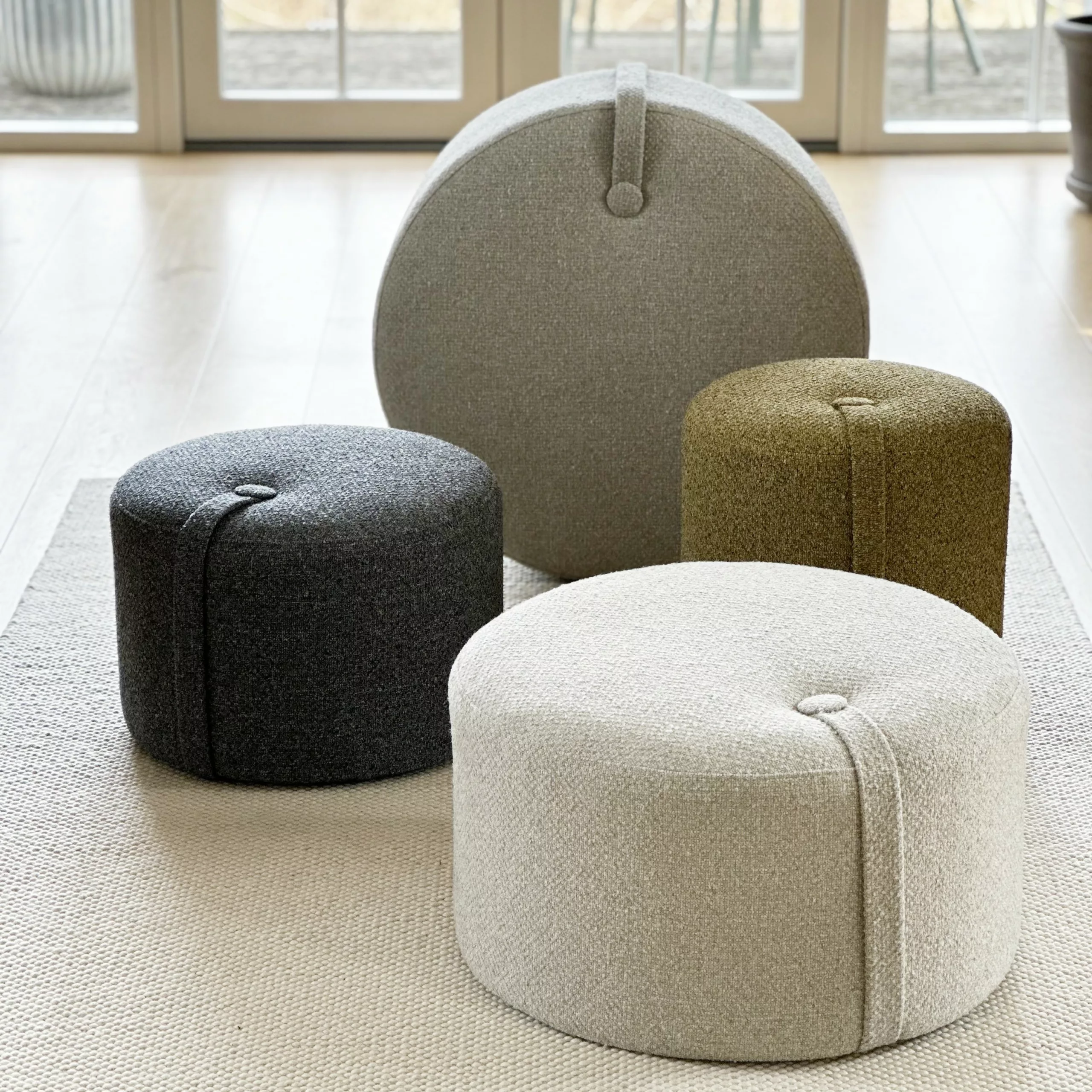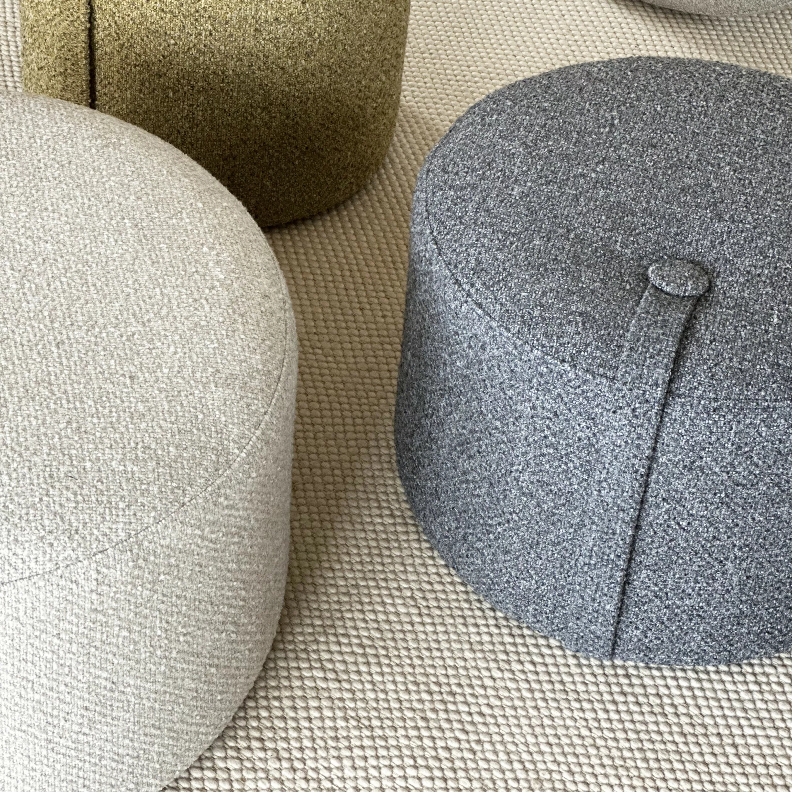 Loop Pouf 泡芙椅配有實用的提帶與裝飾鈕扣設計,讓移動變得輕鬆自然,也為空間增添一份隨性優雅。外層選用柔軟的粗花呢質感布料,提供三款精選色調;內部結構則以 FSC 認證的再利用木材製成,填充回收地毯纖維,並覆以環保再生布料,在舒適坐感與永續理念之間取得完美平衡。