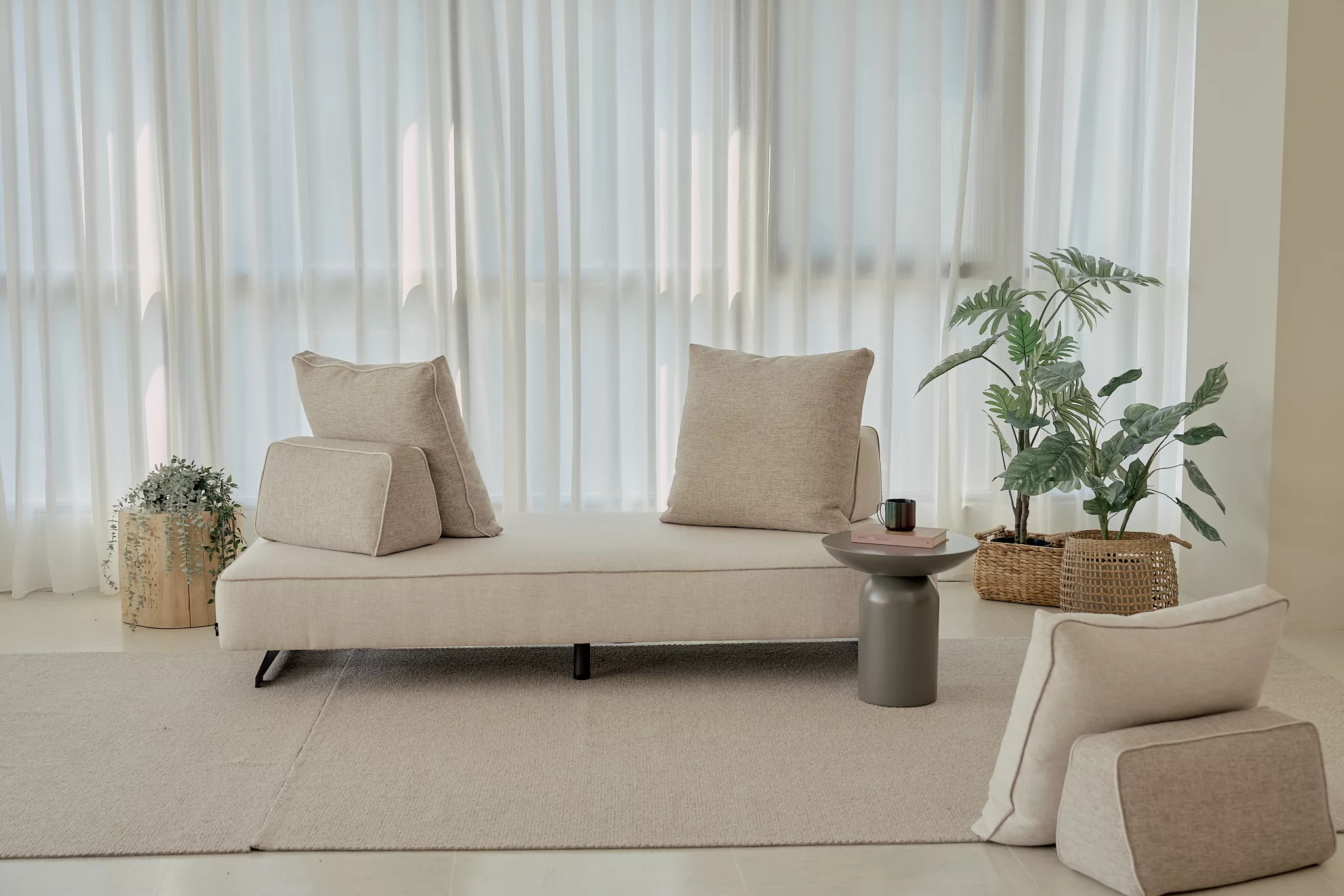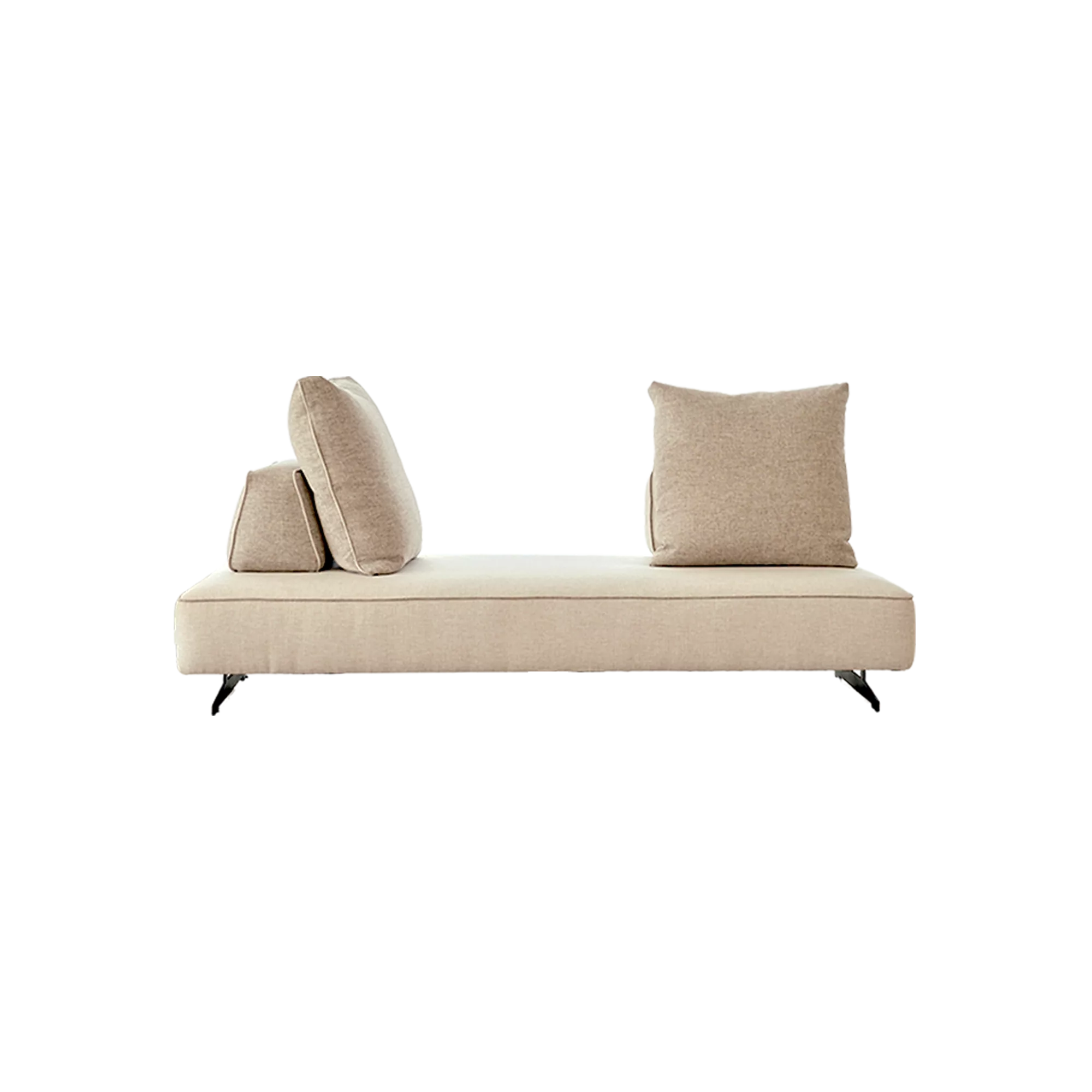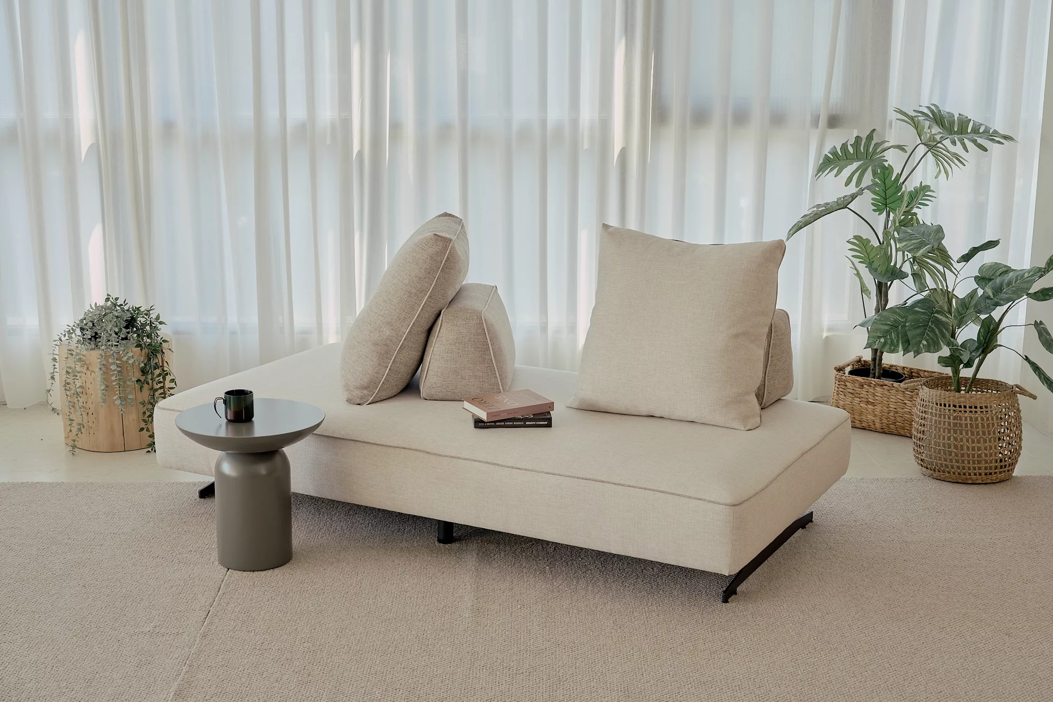 #以靠枕取代椅背厚實羽絨靠枕可自由移動,對坐、側躺、倚靠皆能舒適貼合。